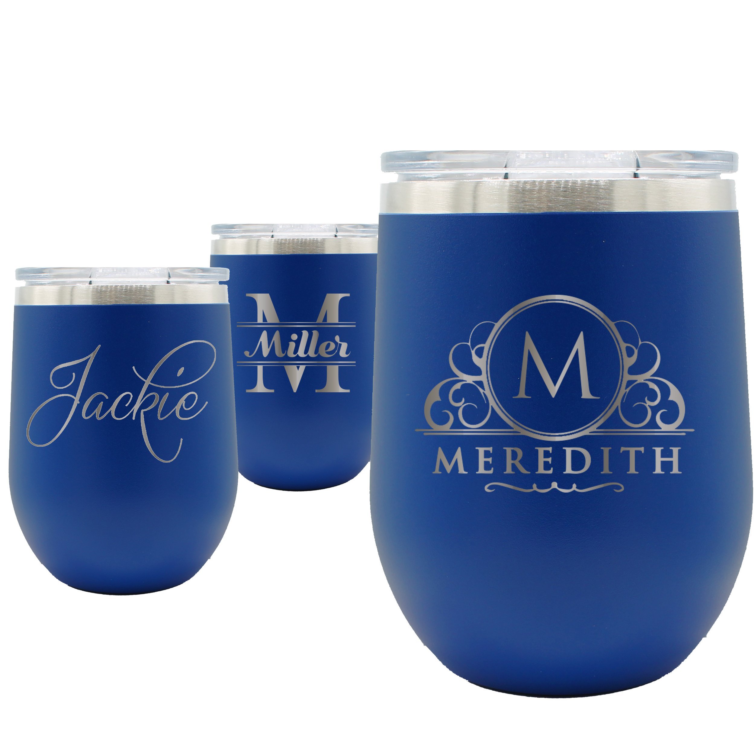 Amazon Com Personalized 12 Oz Insulated Stemless Wine Tumbler Custom Engraved And Monogrammed Royal Blue Tumblers Water Glasses